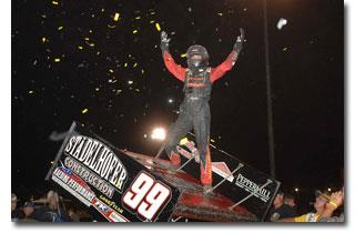 "Wow," said a speechless Larson as he emerged from his #99 machine. "I would have never dreamed of getting a World of Outlaws win,let alone in a race like this. I've been coming to this race since before I even turned a year old and now I'm standing here holding the Gold Cup. This is absolutely surreal and I can't believe it. I was good until we got to lap traffic and then it got tricky because I was better on the bottom and sometimes had to go high. Jason (Sides) got close a few times and I knew he would be a challenge. I would like to one day run NASCAR or Indy Cars but the World of Outlaws is where my heart is and I love running these races."