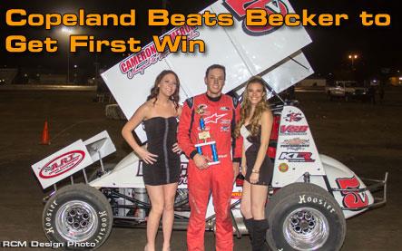 At the front of the winged 410 sprint car main event it was a Hall of Fame front row. Sean Becker was starting from the pole position. Becker has 52 career main event wins at Chico. To his outside was Jonathan Allard. Allard holds 55 career wins at his home track. With these two lions up front everyone thought the win was coming from the front row, everyone that was, except Colby Copeland.
