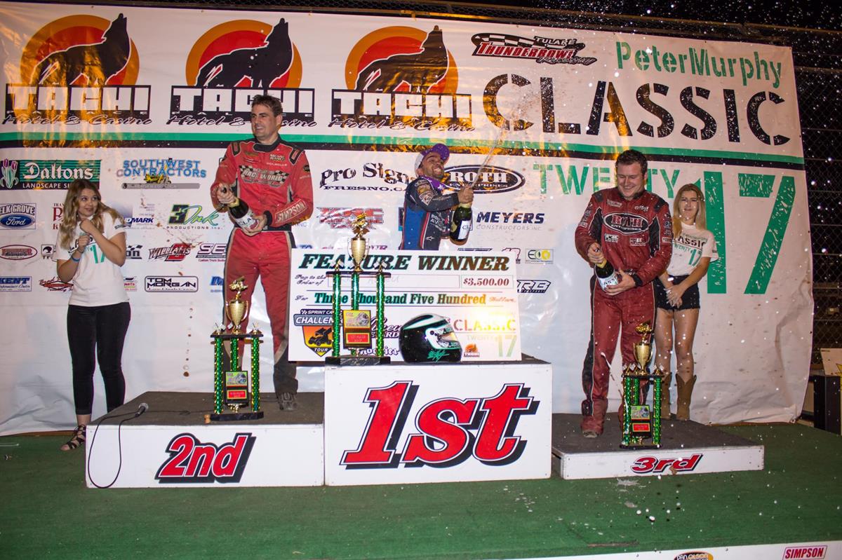 Rico Abreu charged around the high-line, with just four-laps remaining in the feature, to claim the top prize on opening night of the fourth annual Peter Murphy Classic. The victory made Abreu the third different winner in the first three races with the Sprint Car Challenge Tour, this one at Tulare’s Thunderbowl Raceway. The familiar #24 EAGLE bested the 51 car field and made it two consecutive wins on the Tour for an EAGLE car.
