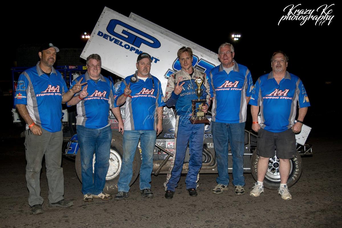 Klint Simpson earned his 3rd win on season, this one at Petaluma Speedway, making 21 total for the partnership between he and Dave Johnson that make up Ram Bull Racing. Klint gave away his hard earned winning trophy to a young fan after the winners presentation. A noble act by the EAGLE driver.