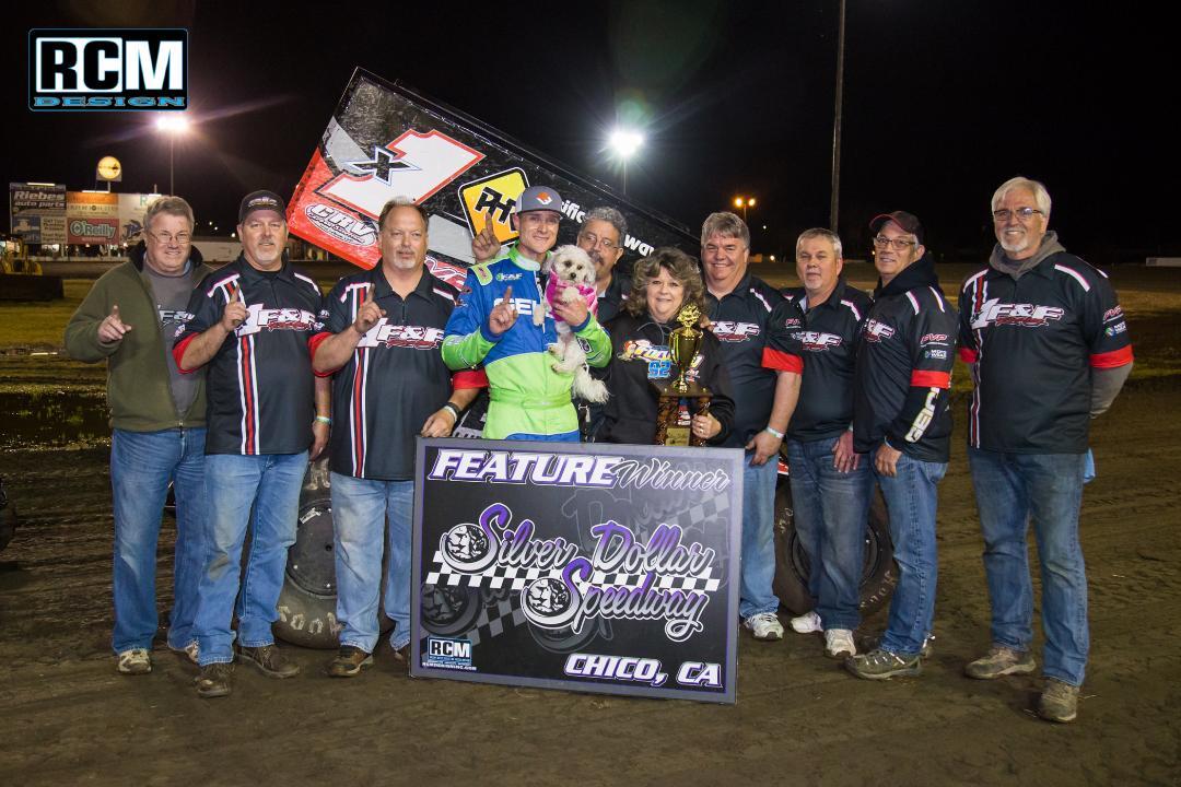 Chico, CA (March 9, 2018) …. Auburn’s Andy Forsberg took the lead on lap 10 and went on to notch his 49th career sprint car win at Silver Dollar Speedway. With the win, Forsberg is now tied with Shane Scott and Wayne Sue for 5th all-time at Chico. “It is pretty cool to be mentioned with those great drivers,� said Forsberg. “It also feels good to be reunited with the x1 guys and get them back in victory lane.� Forsberg was referring to being back behind the wheel of the Friends and Family Racing No. x1, a place he vacated following the 2014 season.