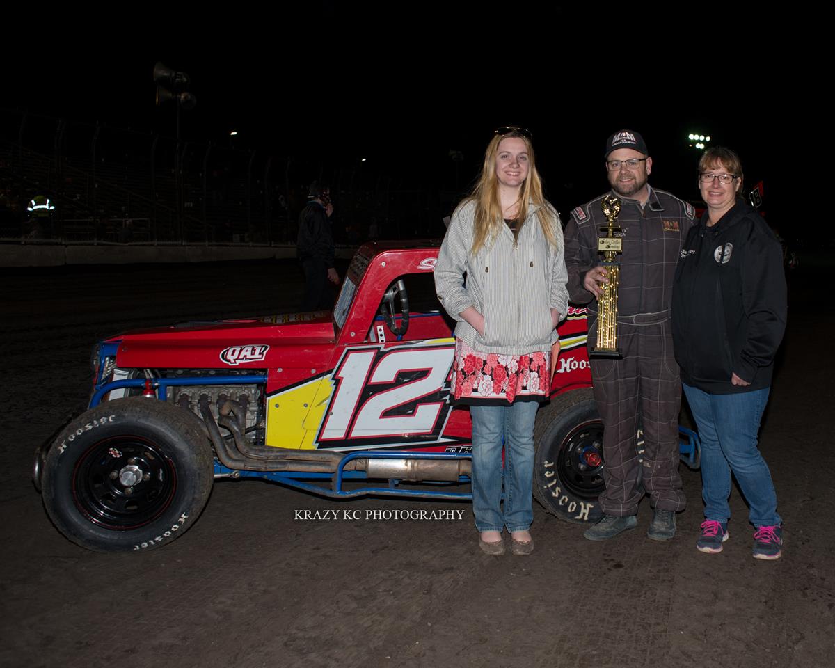 Kevin Bender grabbed the lead of the B main on lap three and went on to win the 10-lap race. Mack Aceves came home in second. Rick Holbrook and Wade Ehrlich rounded out the top four.