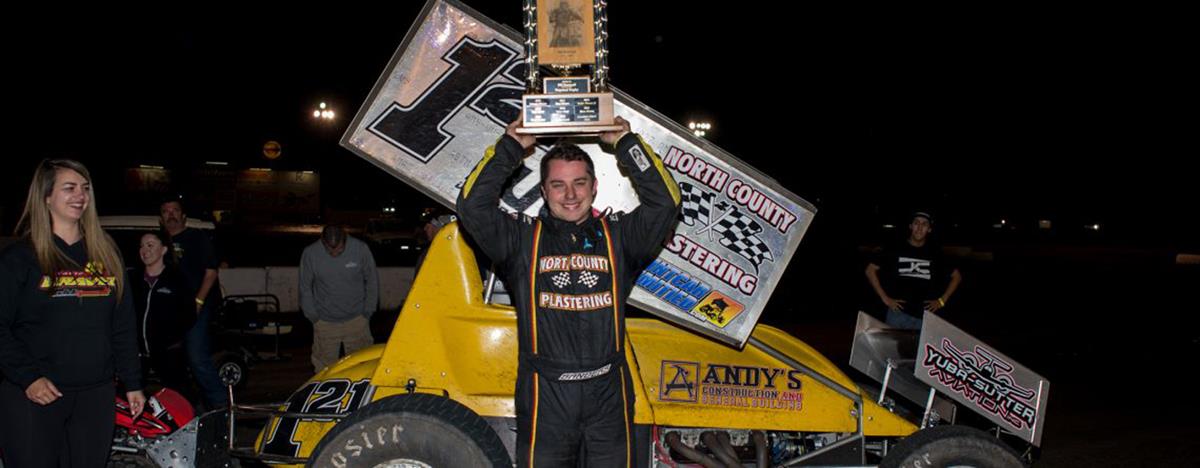 By Silver Dollar Speedway PR (Chico, CA) -- Justin Sanders captured his fourth career win at Silver Dollar Speedway during Friday nights 12th annual Bill Brownell Memorial. Sanders pocketed a cool $3,000 for the win. It was his first Brownell Memorial win. Sanders led all 30 laps to get the win. The pit area was packed with 32 sprint car drivers ready to tackle the famed quarter-mile clay oval in Chico.