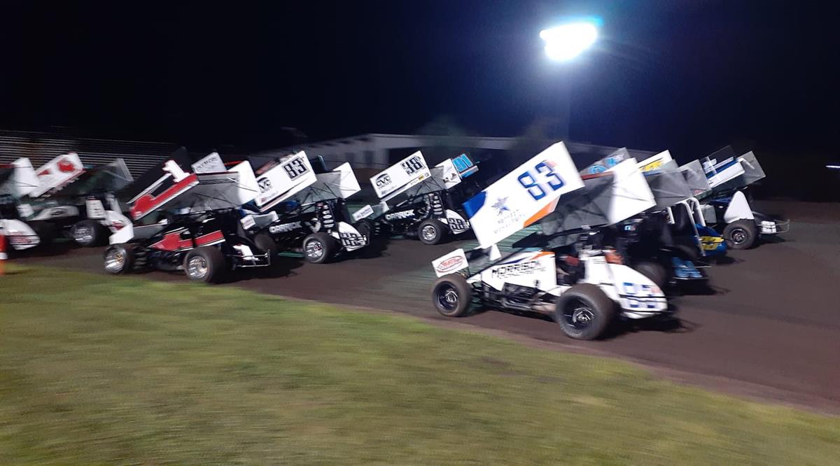 Thirty Dwarf Cars signed in for night number two. What a charge to the front by 12th place starting Mike Grenert, who took the lead on lap 10 and never looked back. It was a popular win solidified by the deep starting spot. Shawn Jones held the lead but on lap 10 seemed to drift off the turn four embankment and fall back to eighth. Jones then put his elbows up and charged back to fourth, only to slide off the track again with three to. Grenert was left up front to hold off Ben Wiesz and Ryan Winter. On lap five, Shawn Whitney flipped in turn one. It was his second flip in consecutive nights. He was shaken up but did walk to a golf kart and drove back to the pits. Wiesz did all he could to pass Grenert as did Winter. But neither could rattle the veteran. Grenert was the winner followed by Wiesz and Winter. Sean Catucci was fourth and Kevin Bender ran fifth. Speaking of Bender, he won the 12-lap B main event. Jones won the first heat. Winter won the second eight lap heat. Whitney dominated heat three. Mike Reeder earned the honors in the fourth heat.