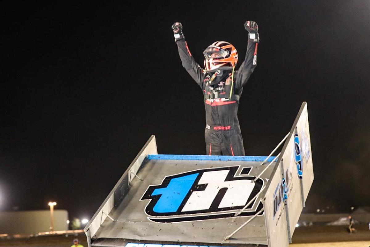 CHICO, Calif., Aug 26 2023… A packed grandstand at Silver Dollar Speedway witnessed Landon Brooks conquer the field at the Tyler Wolf Memorial. Piloting the Tiner-Hirst Enterprises #94X entry, he led the entire distance of the thirty-lap Western Sprint Tour 360 feature to win his third race of Speedweek Northwest-South.